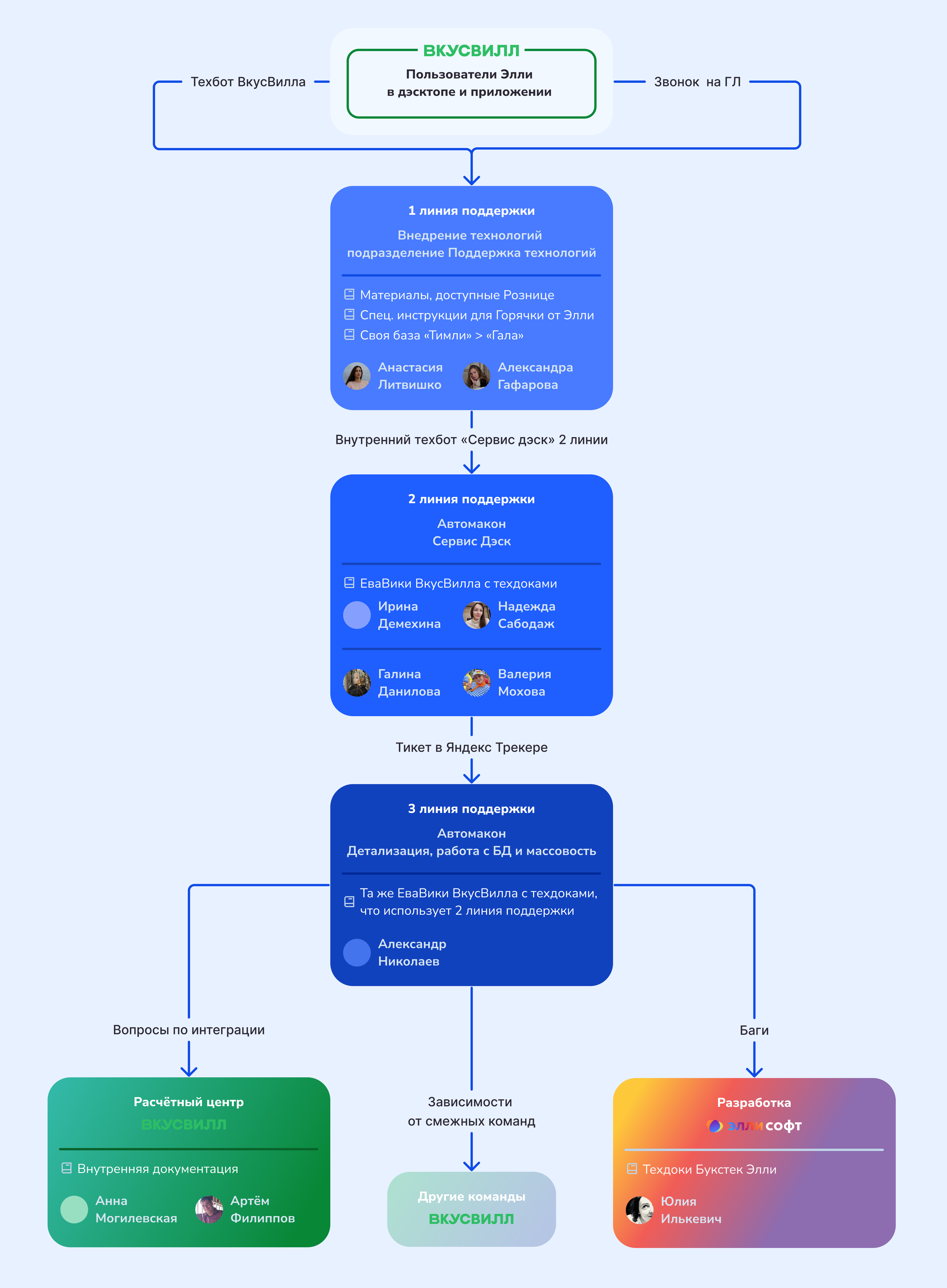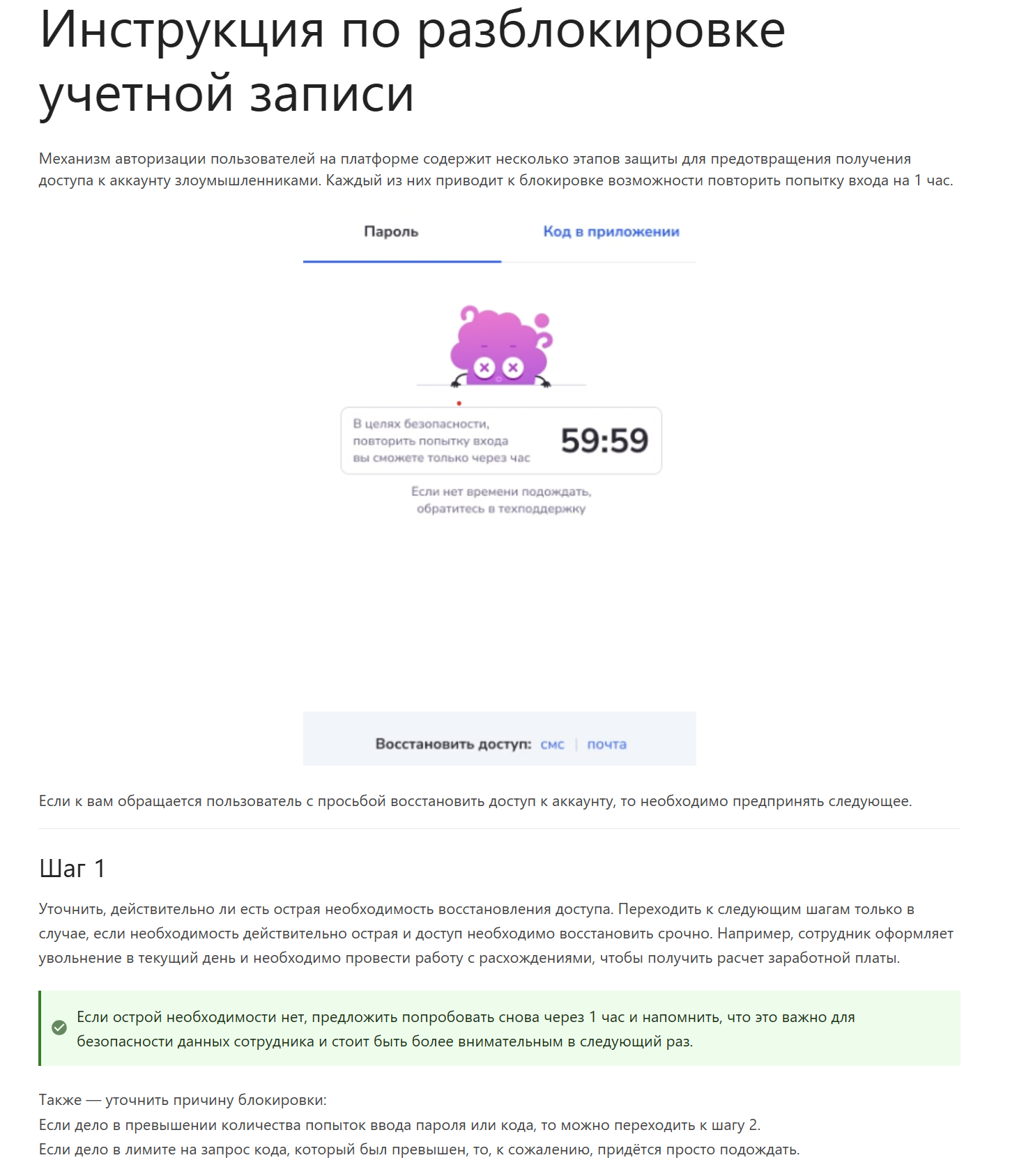 На основании созданных тикетов Техподдержка дополняет и актуализирует свои инструкции в ЕваВики.
