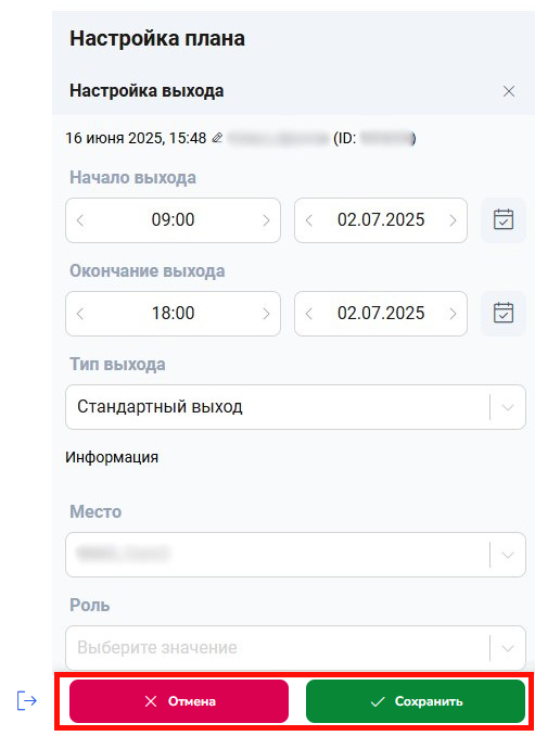 - Роль выхода - Роль сотрудника на этом выходе. Нужно выбрать из выпадающего списка