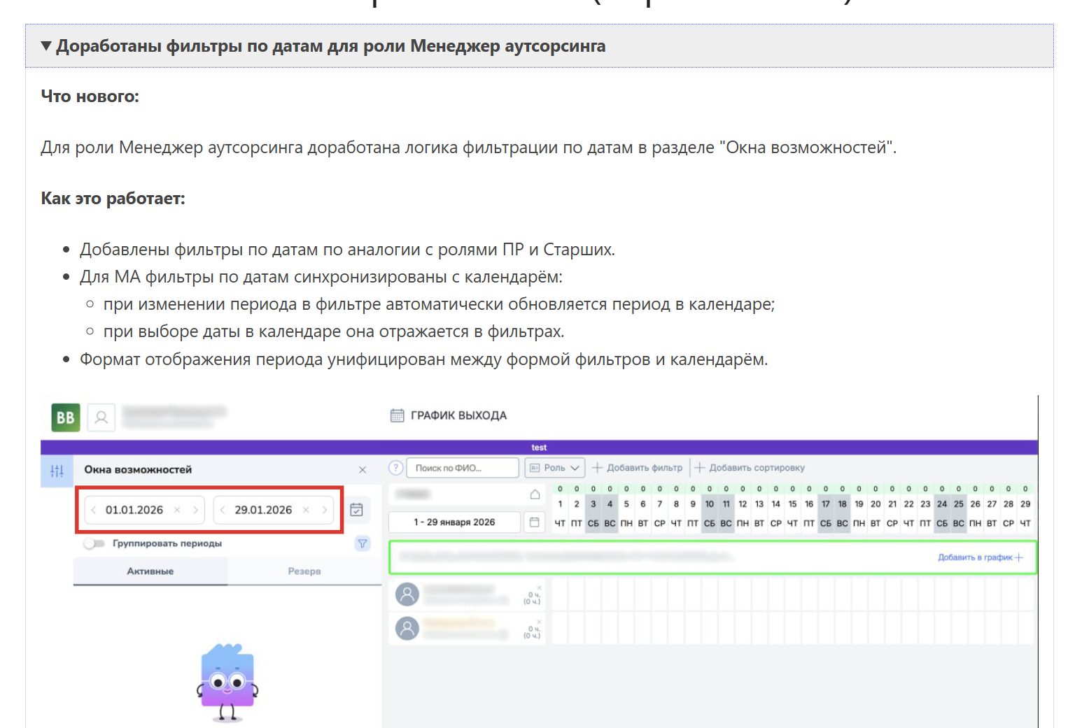 Чаще всего достаточно просто открыть релиз-ноут, развернуть конкретный аккордеон и взять от туда описание и изображение. Иногда описание слишком длинное и его стоит сократить.