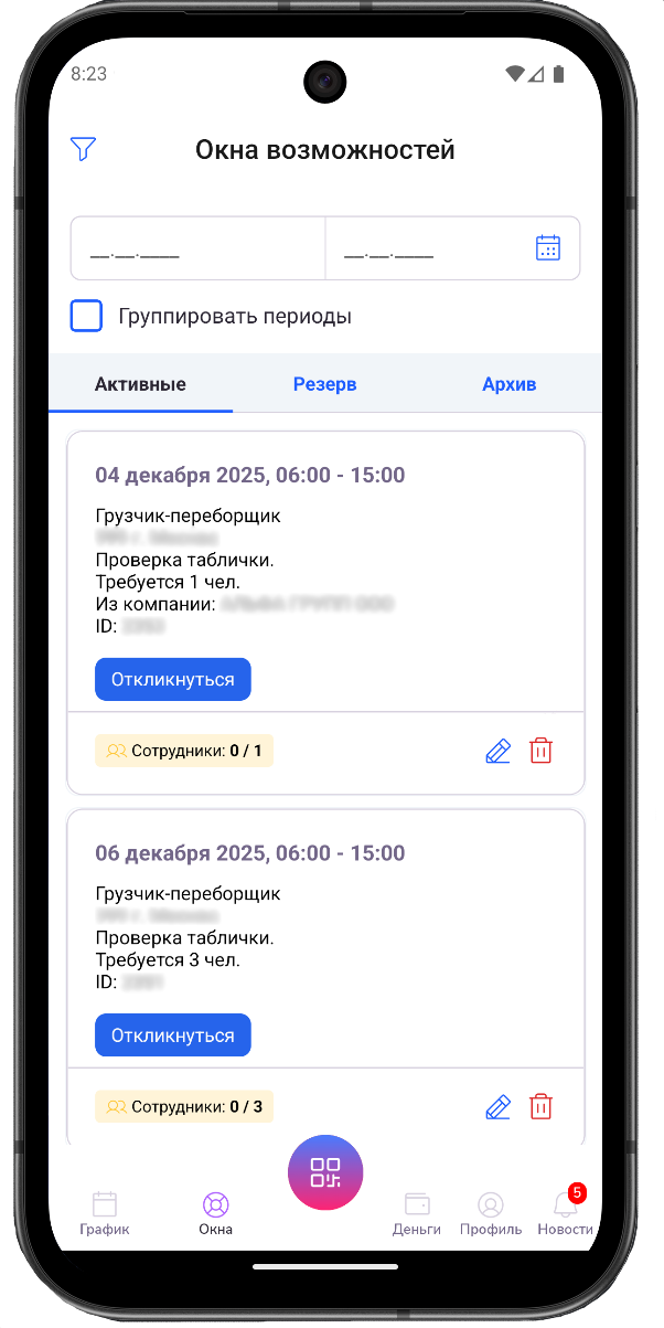 В мобильном приложении Ally для ролей аутсорсинга добавлен раздел «Окна», который повторяет основный сценарии работы с окнами из веб-версии.