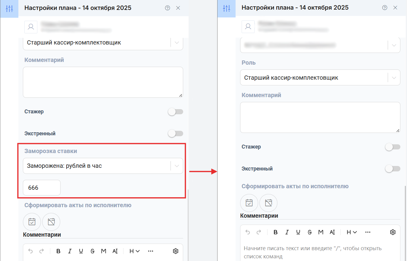 - В графиках больше нет раздела “Заморозка”. В редактировании смен и мест работы опция также исчезла. Функция отключена для всех ролей