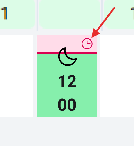 - У ячейки выхода с перегулом появится соответствующая вкладка с иконкой часов