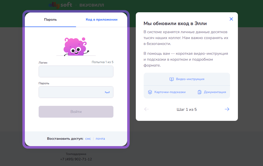 Добавлен онбординг для ознакомления с новой системой авторизации в приложении Элли. Теперь при открытии страницы авторизации появятся пошаговые подсказки (5 шагов), объясняющие изменения и как с ними работать.